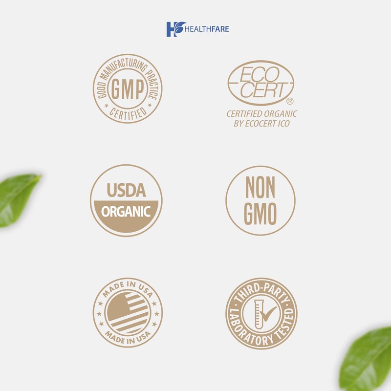 - CERTIFIED MANUFACTURING: Our supplements are manufactured in the USA, cGMP Compliant, USDA Organic, NON-GMO, and Third-party tested to ensure the safety and quality of all of our products. Our HealthFare supplements do not contain any sweeteners, artificial flavors, wheat, corn, gluten, soy, milk, egg, fish, or tree nut ingredients. Enjoy the fantastic advantages of our powerful supplements without worrying about additional ingredients that could be concealed in each capsule.
