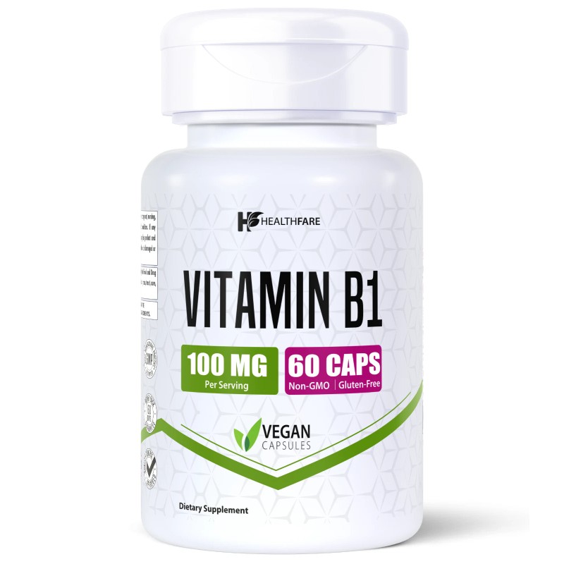 Healthfare Vitamin B1 100mg | 60 Capsules | Thiamine Supplement |
