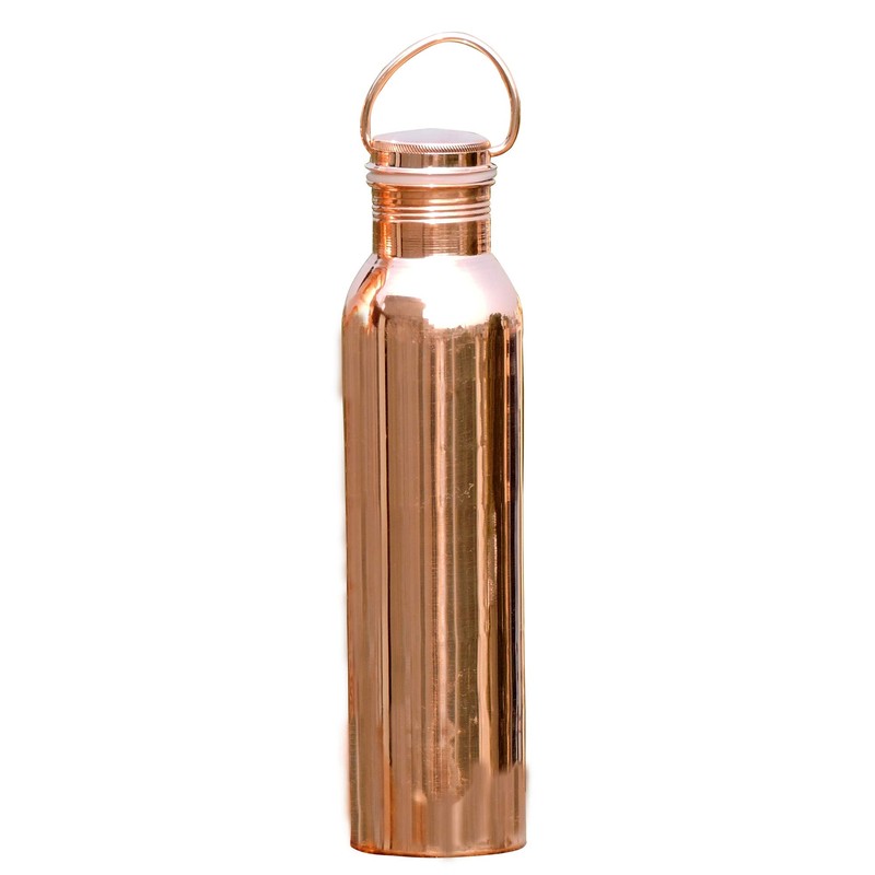 HealthGoodsIn - Pure Copper (99.74%) Water Bottle with Carrying Handle | Seamless Leakproof Ayurvedic Water Bottle 600 Ml (20.28 Fluid Ounce)