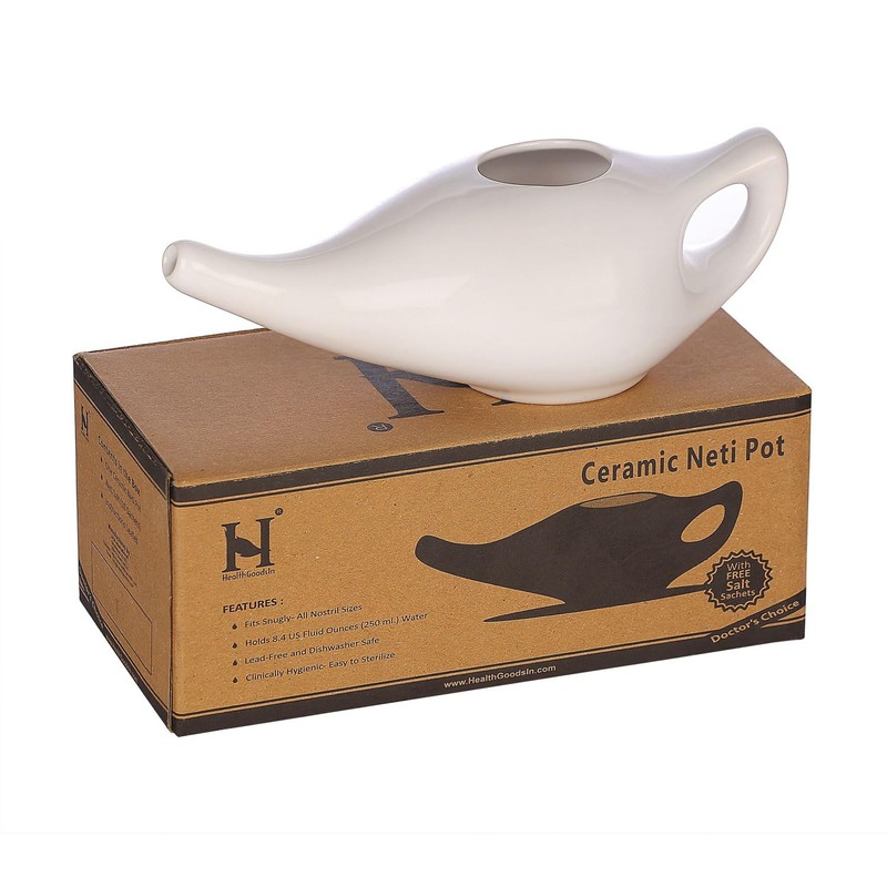 HealthGoosaAU - Durable Ceramic Neti Pot for Nasal Cleansing with 5 Sachets Neti Salt - 225 Ml Capacity