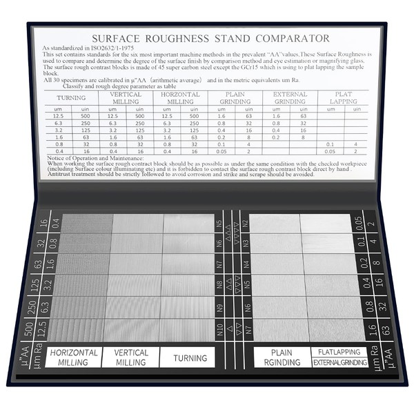 Healthible Surface Roughness Standards Set, Surface Finish Comparator Set, 30 Specimens with Ra0.05-12.5mm