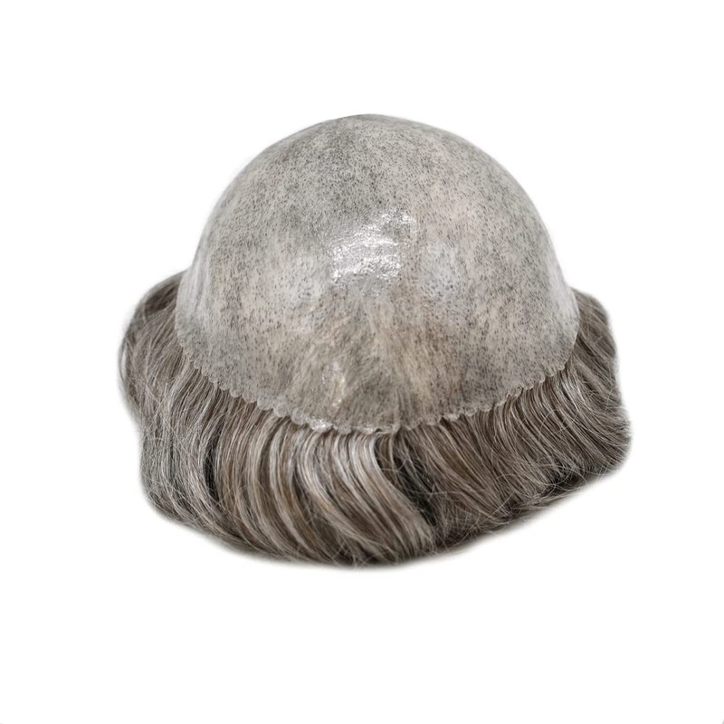 - The toupee grey hair is synthetic fiber(#60RY color hair are all human hair),and they blend perfectly with human hair.Not easy to break,the knots are stronger.If you are new to wear toupees,we suggest you find a professional hairstylist to fix the hairpiece.Toupee for men,We are always here to solve your problems before and after sales.