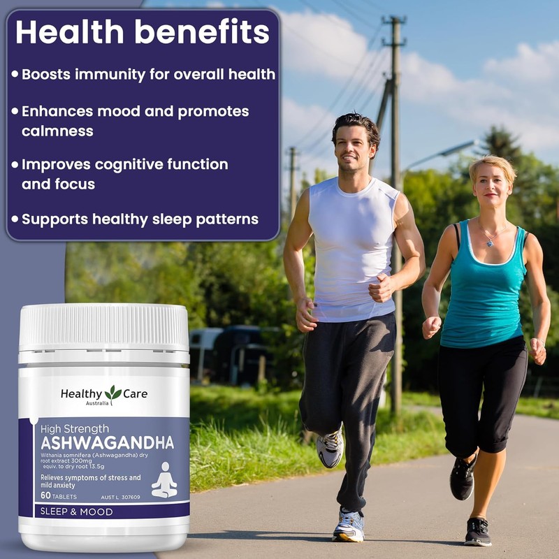 Healthy Care High Strength Ashwagandha – 60 Tablets – Natural Supplement to Relieve Stress, Mild Anxiety, and Support Emotional Wellbeing – Adaptogenic Herb for Calm, Focus & Energy Balance