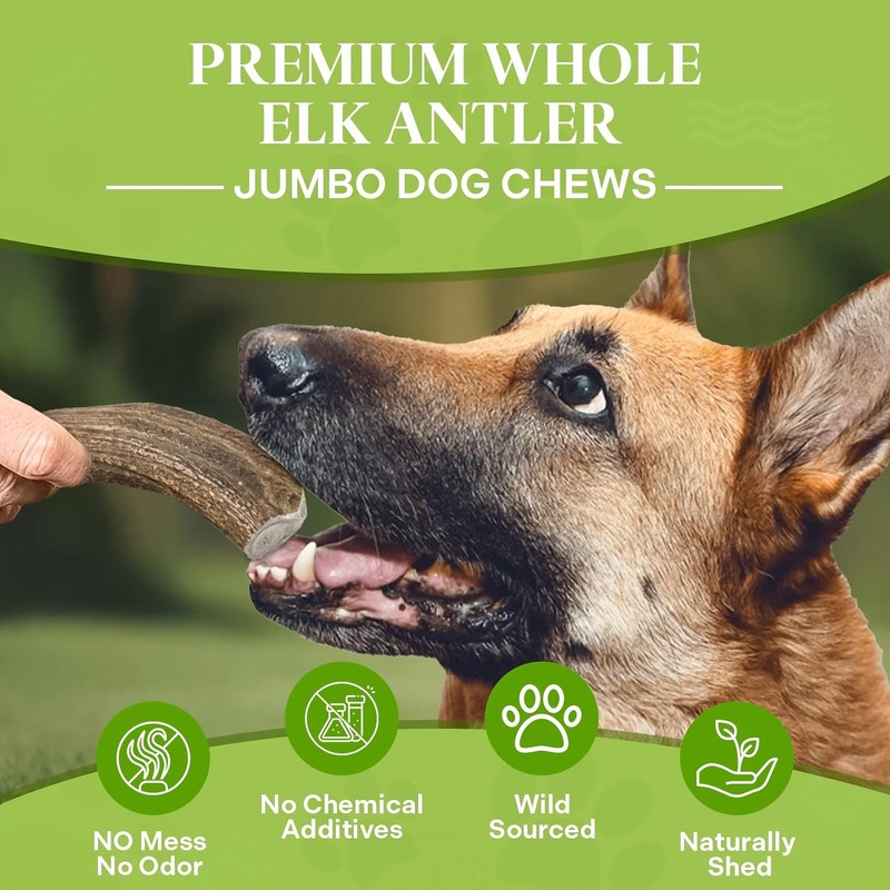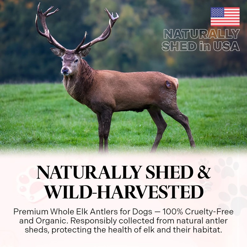 • 1. All-Natural and Pure: Our elk antlers for dogs contain no artificial colors, flavors, additives, preservatives, bleach, dyes, or formaldehyde. Just pure, natural antlers for dogs that offer a safe and healthy chew experience.