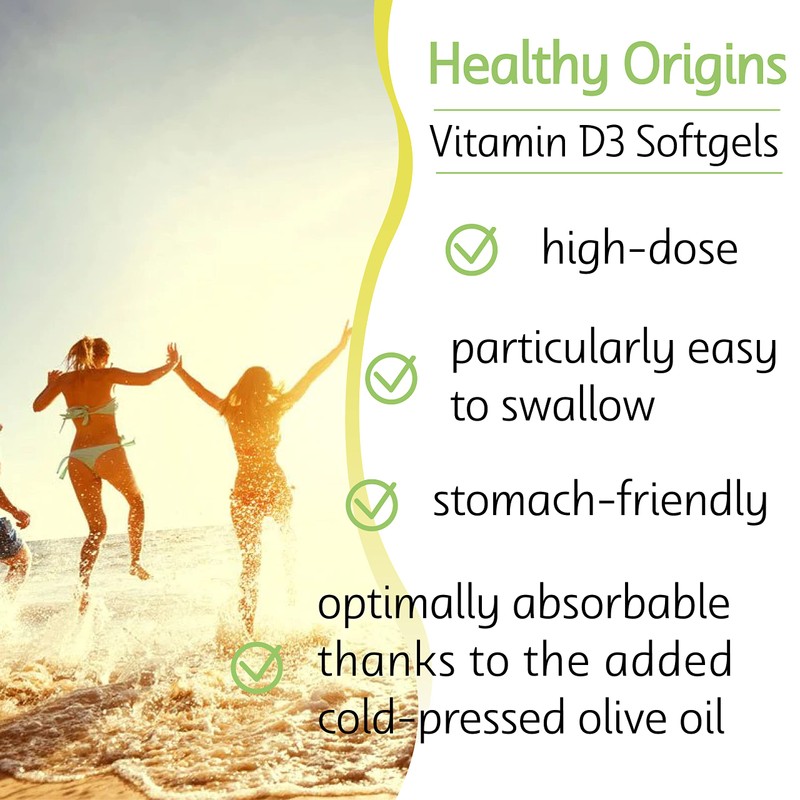 - GOOD BIOAVAILABILITY: Healthy Origins Vitamin D3 is characterised by good bioavailability and is suitable for a nutritionally conscious lifestyle