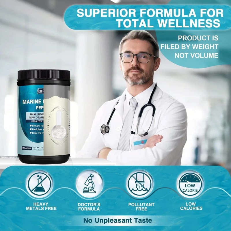Experience youthful energy and radiance with DRFOSTER Marine Collagen Peptides Powder, a multi-functional beauty & wellness supplement crafted from wild-caught, deep-sea fish collagen for exceptional purity and absorption.