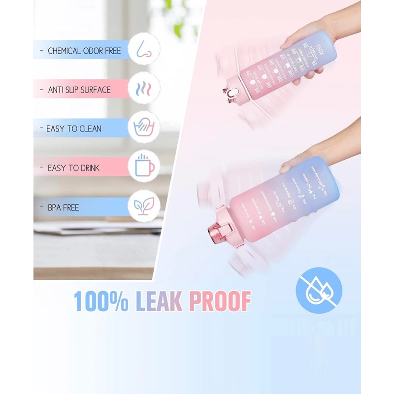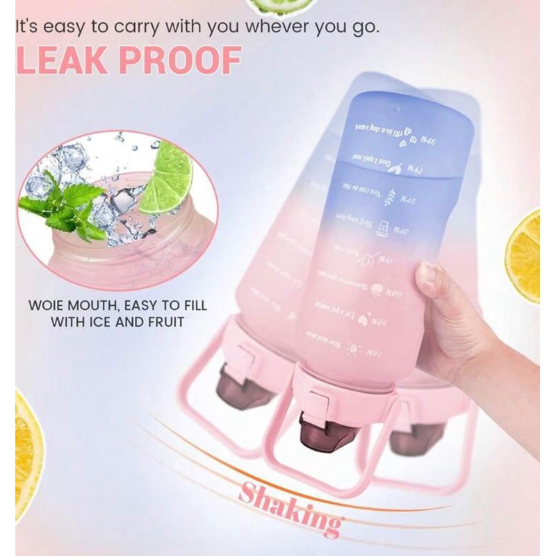 HealthyMoov 3 Motivierende Wasserflaschen, Kunststoff, ultraleicht, kompakt, flach, quadratisch, Sport, Wandern, Transport, Reisen, Camping, Outdoor, Mahlzeiten, 280 ml, 750 ml, 2 l, Rosa, Blau