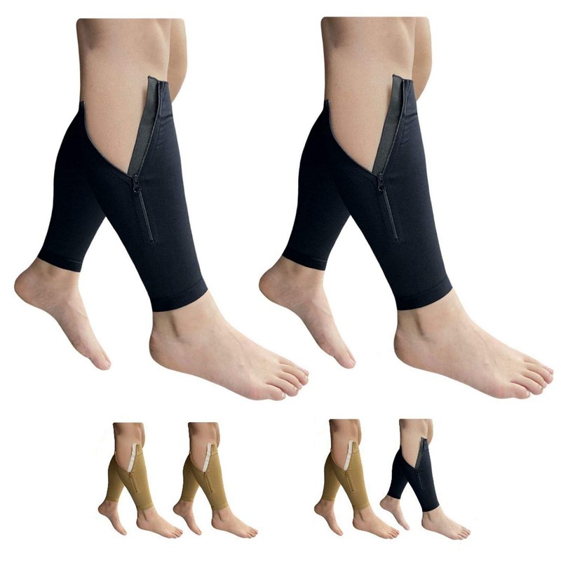 - 2 PAIRS COMBO PACK - Includes 2 pairs with your choice of combo, beige or black color. The footless calf sleeve along with the zipper makes it even better to put these on.