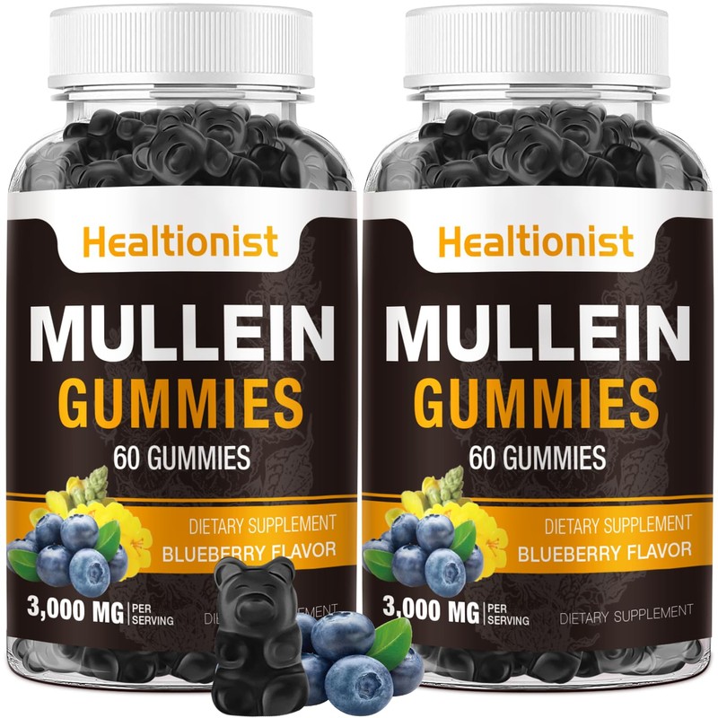 Healtionist Healtionist 2 Pack Sugar Free Mullein Gummies - Lung Cleanse, 3000MG Mullein Supplement for Respiratory, Organic Mullein Drops with Quercetin & Bromelain for Lung, Digestive Health & Immune 120ct