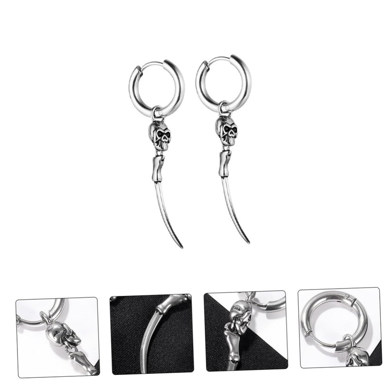 Healvian 1 Pair Retro Punk Skull Hoop Earrings for Men Hip Hop Style Ear Accessories Comfortable Stainless Steel Dangle Pendants Unique Design for Parties and Casual Wear