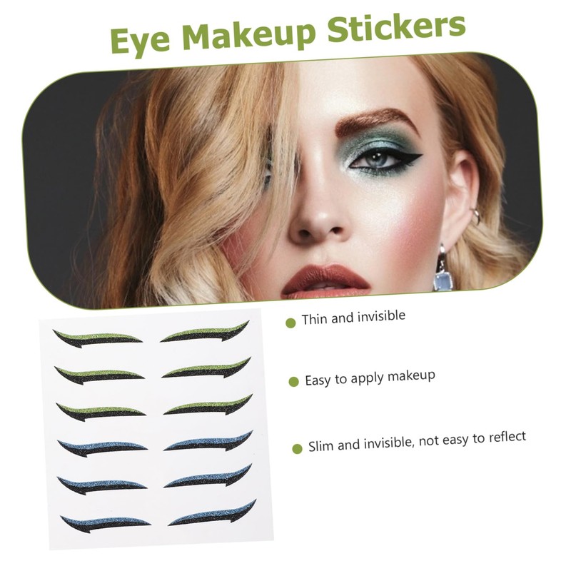 Healvian 12pairs Reusable Eyeliner Stickers for Double Eyelids Eye Makeup Stickers for All Eye Shapes Each Blue Green for Single and Thin Double Eyelids