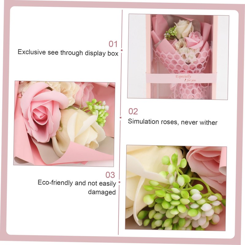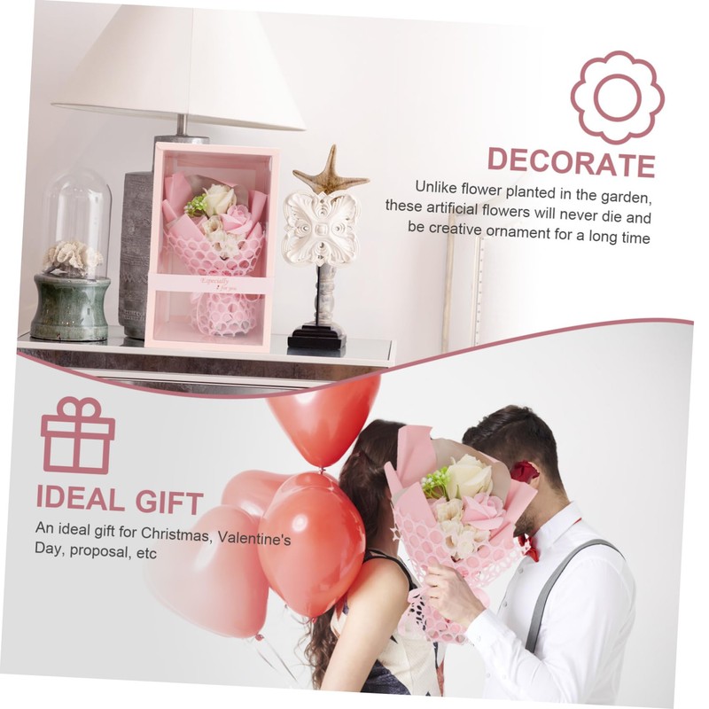 - Artificial soap rose bouquet--beautifully arranged artificial soap roses with an exclusive see through display box. valentine's day or for any loved ones!,romantic preserved flower
