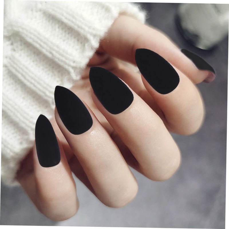 Healvian 24pcs Fake Nail Stickers Fake Nails Nail Art Decals Full Cover French Tips Full Cover Nails Nail Gel Matte Coffin Nails Women Nail Decor Fake Fingernails Nail Decoration Black
