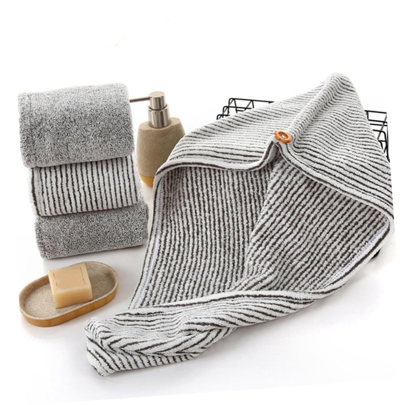 - Easy to use, pull up the across your head and fix it under the secure button Quick Drying Towel.