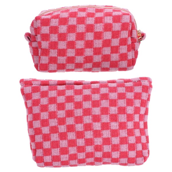 Healvian 2Pcs Checkered Makeup Bag Set Capacity Reusable Cosmetic Bags for Wo...