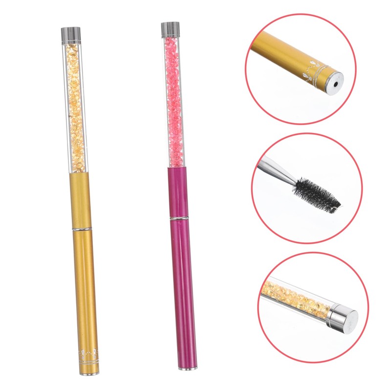 Healvian 2pcs Eyelash Brushes with Caps Soft Eyelash Applicator Wands Stylish Rhinestone Handles for Effortless Curling Compact and Portable Makeup Tool for Beautiful Lashes
