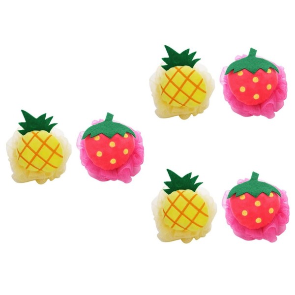 Healvian 6pcs Fruit Shaped Shower Strawberry and Pineapple Mesh Pouf Bath Sponge for Exfoliating Body Scrub Soft and Comfortable Bath Lily for Relaxing Shower