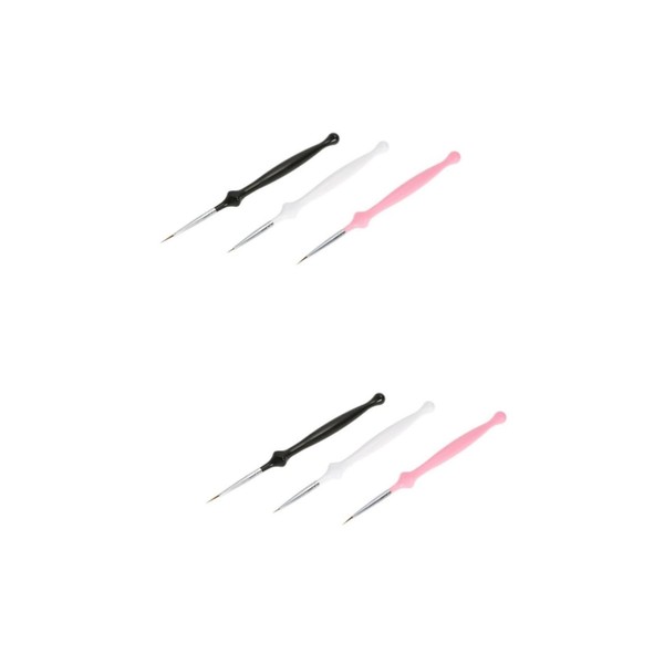 6 x DIY Nail Brush Tool Sketch Pen Drawn Painted Nail Polish Pull Line Extremely Long Brush (Black + White + Pink)
