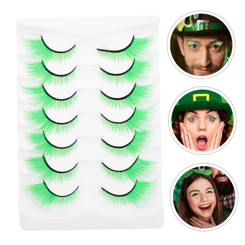 Healvian 7pairs Green Faux Lashes for Women Dramatic St Patrick Day Costumes Reusable Eye Makeup for Parties and Performances for Irish Celebrations