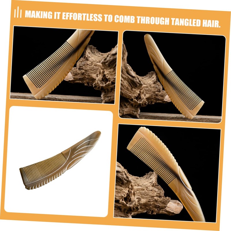 styling comb With its thick, curved style and unique design, this comb is not only functional but also a stylish addition to your hair care routine.ox horn hair comb The comb teeth with reasonable spacing make it effortless to detangle even the stubborn knots in your hair.hair massage comb Plus, the added massage feature provides a soothing sensation to your scalp while you comb.detangling comb Its size makes it easy to handle and for on-the-go styling