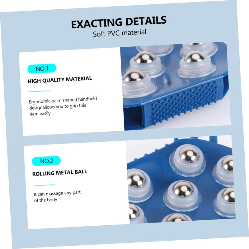 back brush The unique body massager features 7 steel balls which support 360 degrees rotation and PVC brush, which allows you to massage your back, face, neck, hand, leg and any of your body to stress and provide you comfortable massage experience.back massager It helps and muscle stress, improves lymphatic functions, exfoliates and stimulates , excellent effect on the feet, knees, legs to rub and soften skin
