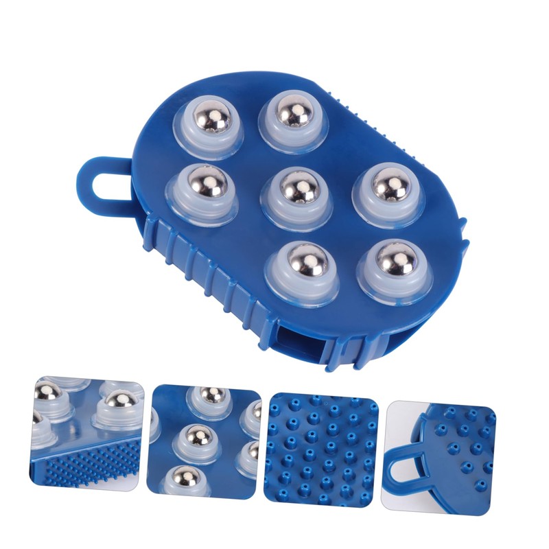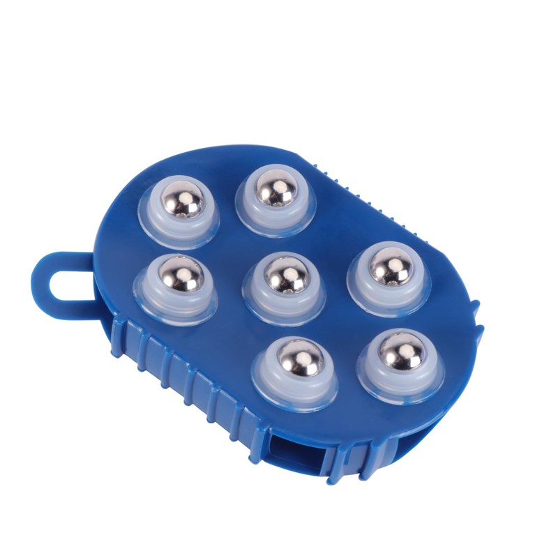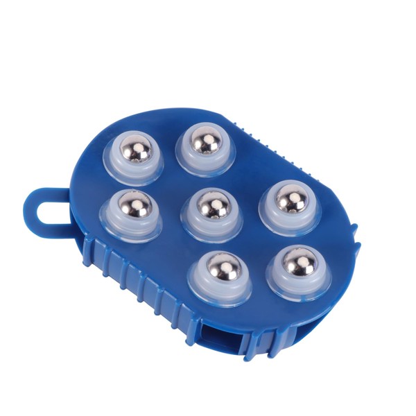 1 x Palm Shaped Massage Glove Massage Bath Brush with 7 Metal Roller Ball Handheld Body Massager For Relieving Muscle Soreness (Blue)