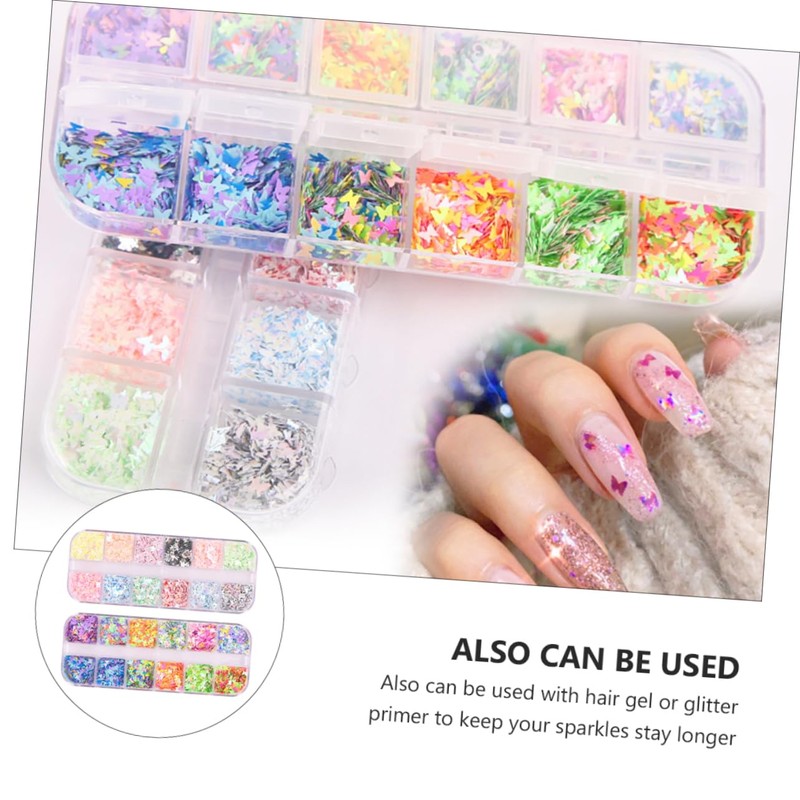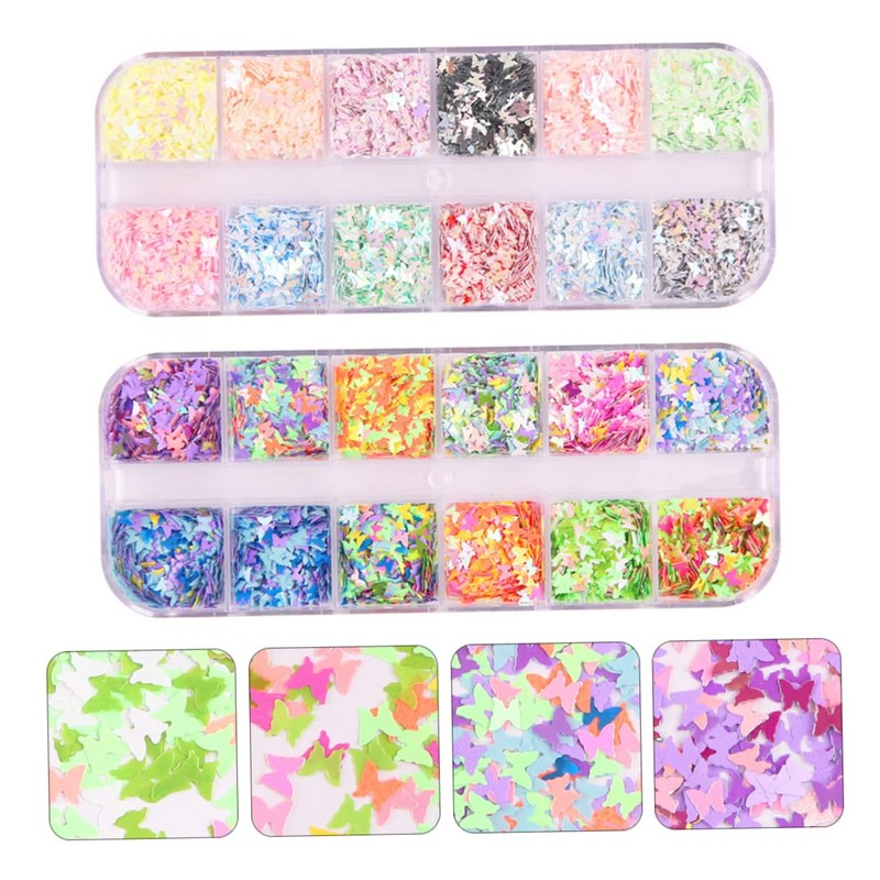 - Butterfly nail glitters-- these nail glitter flakes are made of material and pigment, safe and to use on your nail or skin.