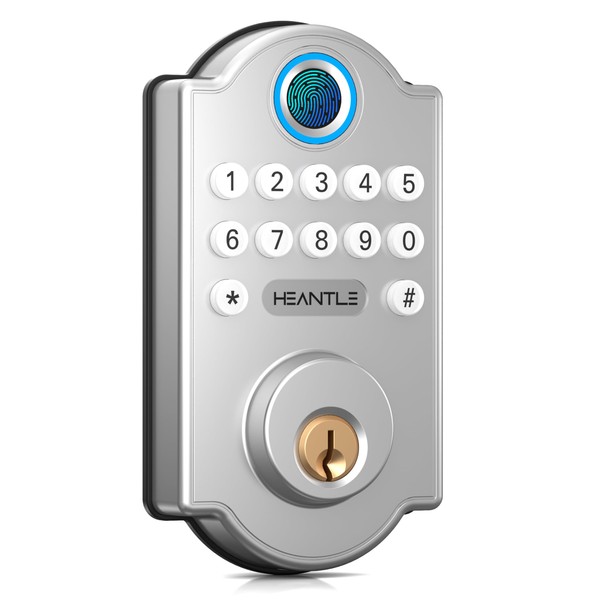 HEANTLE Smart Deadbolt Lock: Keyless Entry Door Lock with Fingerprint for Front Door Auto Lock Simple Installation Silver