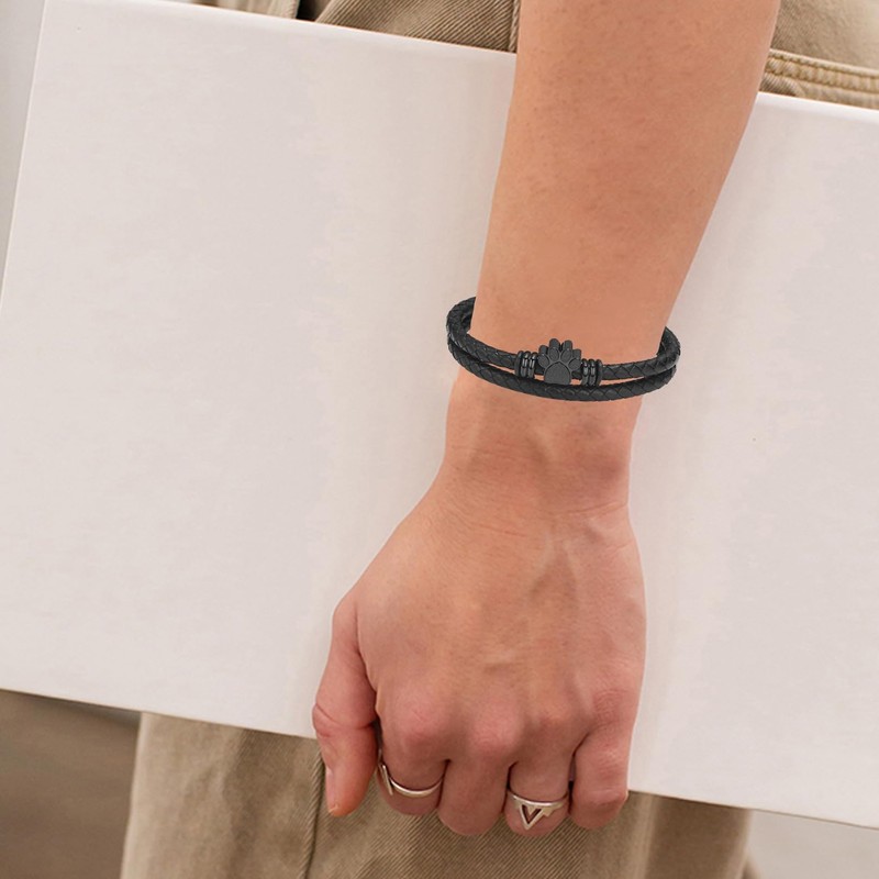 Hearbeingt Dog Paw Urn Bracelet for Ashes Braided Leather Cremation Jewelry for Ashes for Dog Cat Keepsake Bangle(Black 22cm)