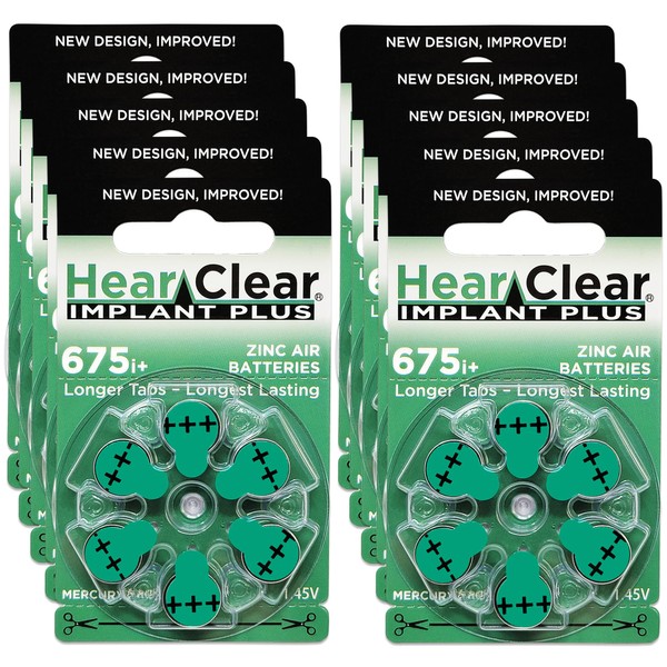 Hear Clear Size 675P Cochlear Implant Hearing Aid Batteries Green Tab (60 Batteries)