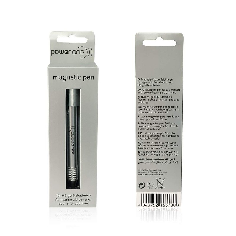 - Magnetic pen for hearing aid battery insert and remove.