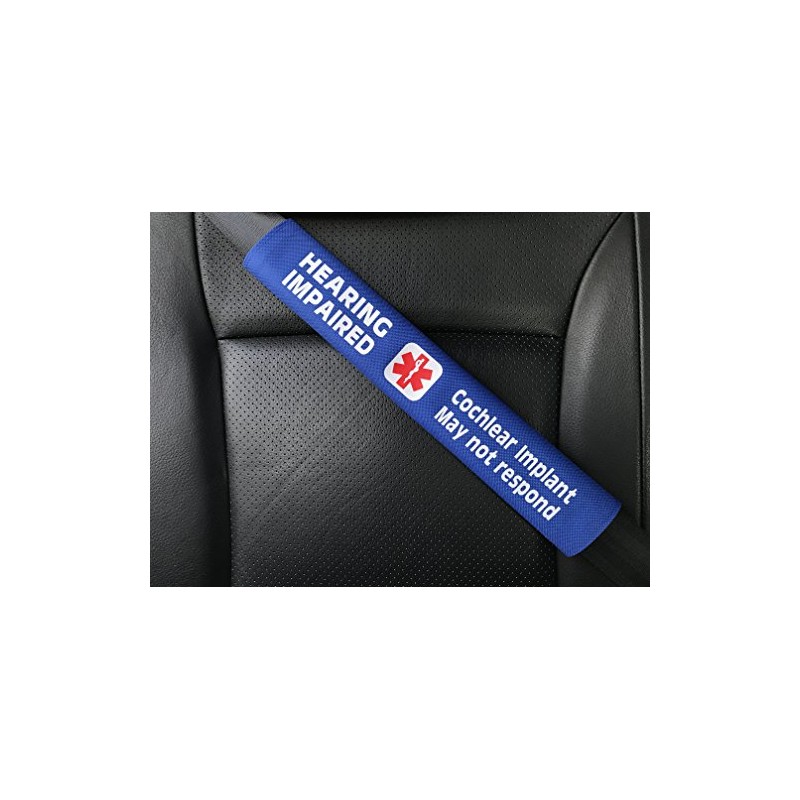 Hearing Impaired Cochlear Implant Medical Alert Seat Belt Cover (Blue)