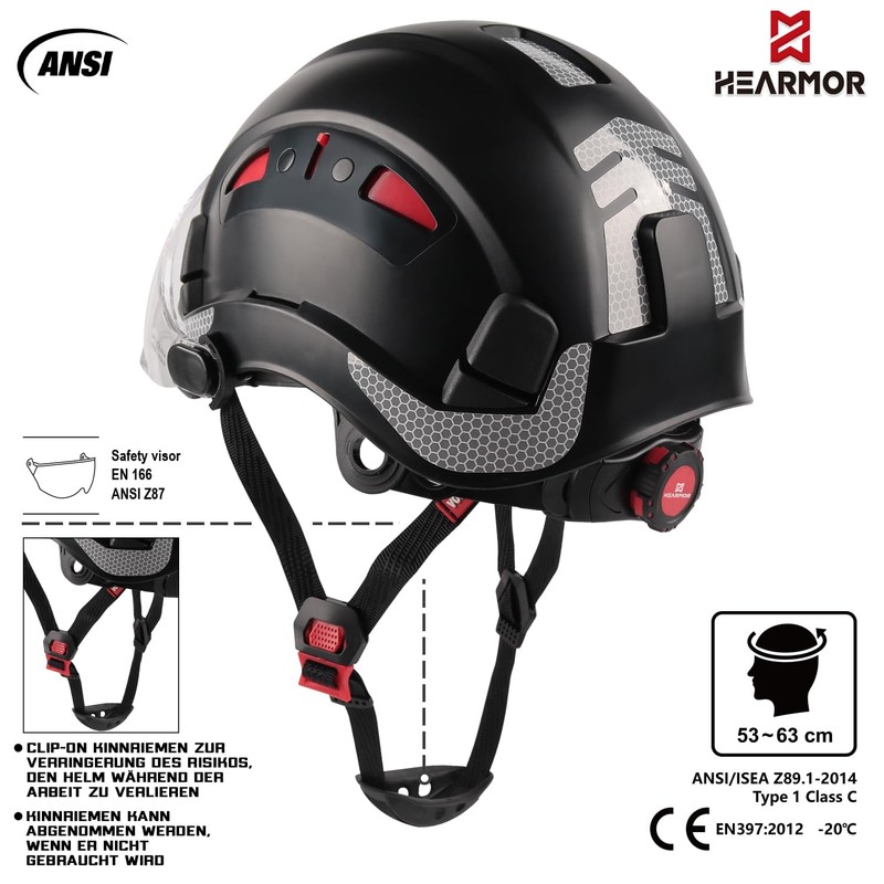 - 【Ideal for head protection】The HEARMOR safety hard hat is made of high-quality ABS materials with exceptional durability and impact resistance to protect the head from falling objects, impacts, collisions, etc. These helmets are ANSI Z89.1-2014 Type I Class C compliant and CE (EN397:2012 -20°C) certified, which is essential to ensure that the professional wearing them provides reliable protection.