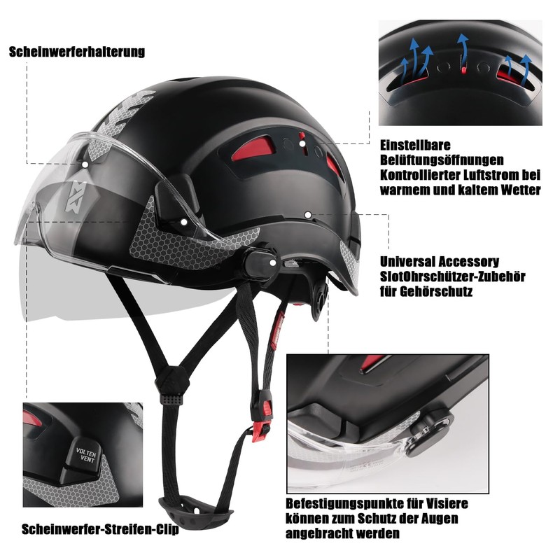 - 【Additional Protection】These helmet comes with a Rapid-Dial ratchet headband that can be adjusted with one hand while wearing gloves. And it is fitted with an accessory slot, allowing the attachment of additional safety equipment or accessories. This slot provides flexibility for workers to customize their helmet according to their specific needs, such as attaching a headlamp or hearing protection devices.