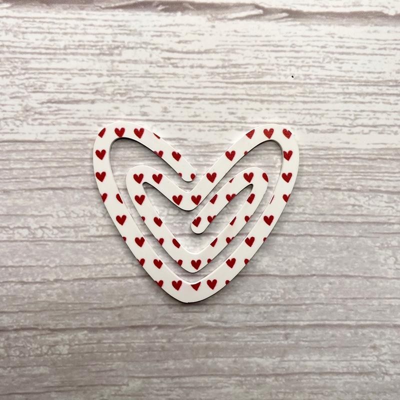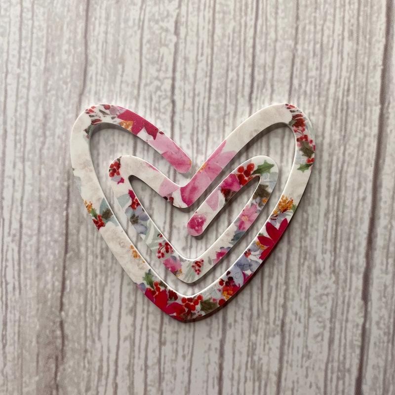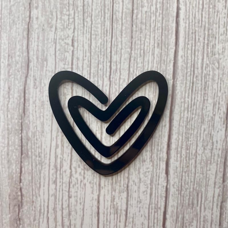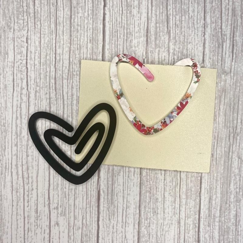 Laser cut from 1/16” acrylic, heart shaped paper clip style bookmark. *Pink floral heart is white on the back! All other designs are double sided. Dimensions: 2.25”