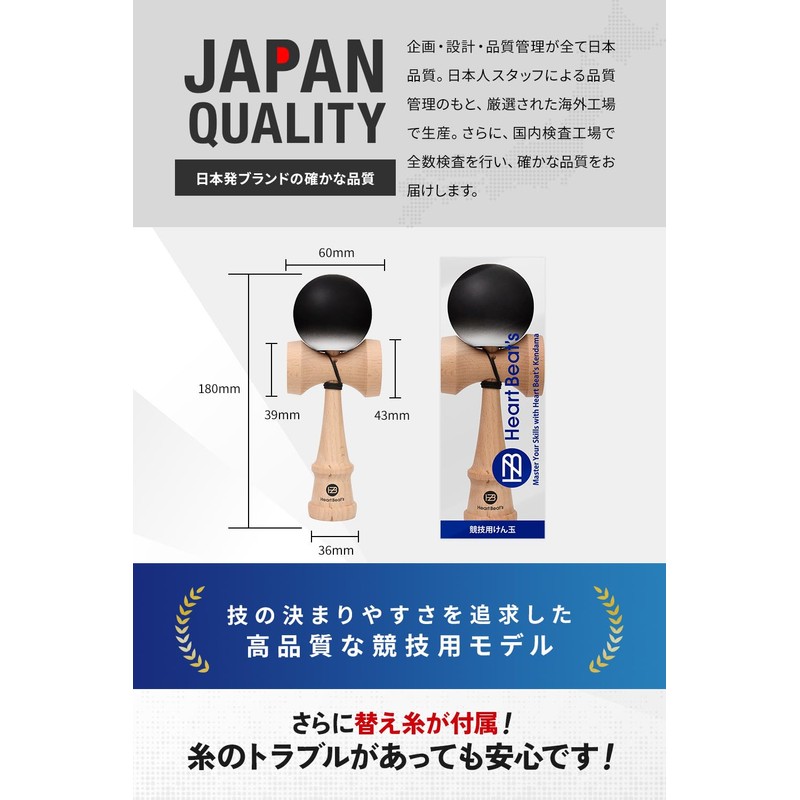 - New release for 100 first arrivals. Ultra fast cost 500 yen off coupon. [Your technique is determined! Competition Kendama: The Heart Beat's Kendama is a high-quality competition kendama that has the same specifications as the Japan Kendama Association certification. Can be enjoyed by a wide range of people from beginners to competitions, toddlers, elementary school students, children to the elderly. Designed to challenge a variety of techniques, from basic to application techniques. ✅ Special matte coating improves grip and cushioning, making the ball easier to stop. The two-tone color allows you to easily track the movement and rotation of the sphere and increase the success rate of your trick. ✅ The large opening makes it easier to insert the toes and further improve the accuracy of your technique