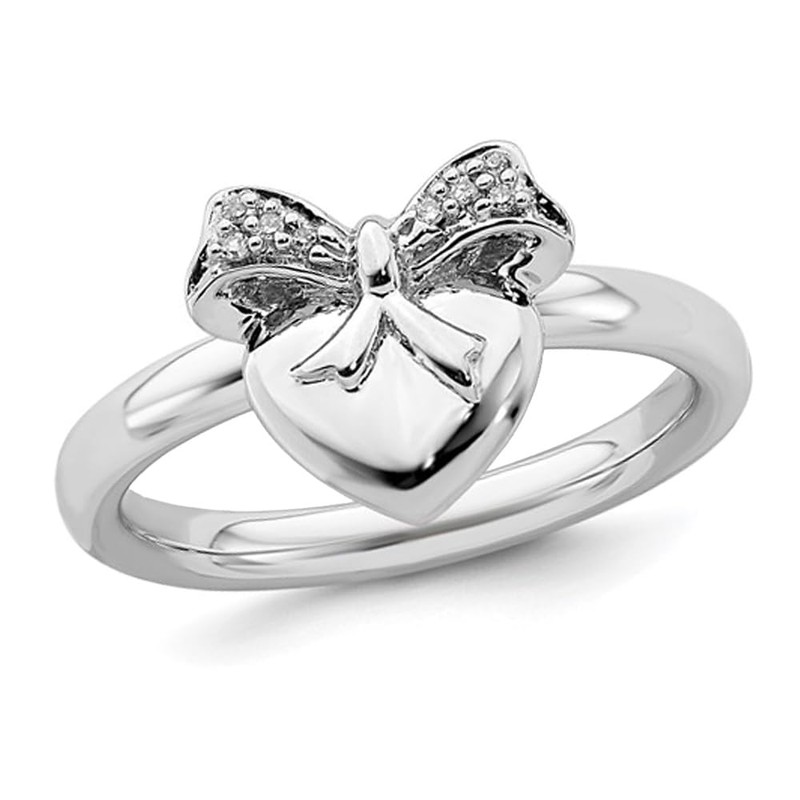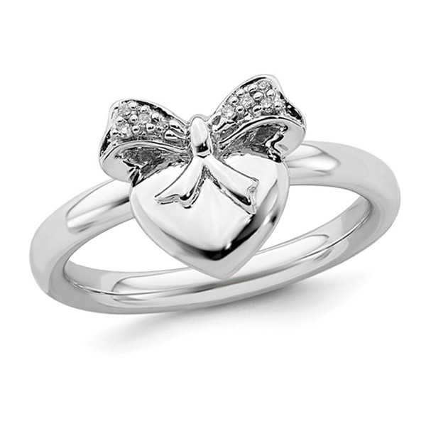 Heart & Bow Ribbon Ring with Diamond Accent in Sterling Silver
