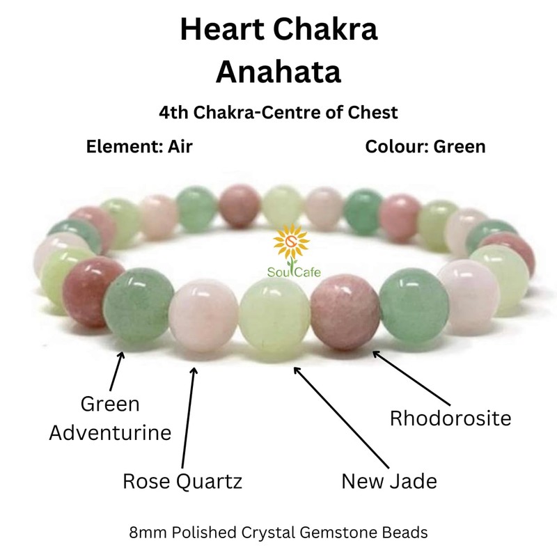 Heart Chakra Bracelet - Power Bead Bracelet - Crystal Gemstones - Green Aventurine, Rose Quartz, New Jade, Rhodochrosite