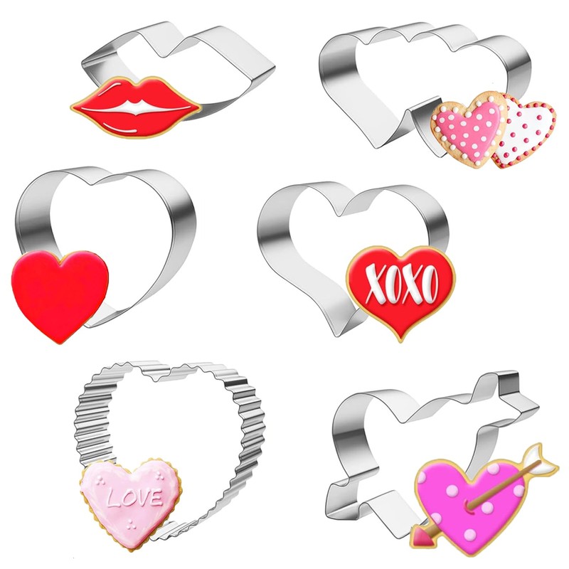 - ❤️【Valentine's Day Cookie Cutter】Celebrate love with this heart cookie cutter set, featuring 6 unique designs perfect for crafting personalised cookies and chocolates for your loved ones this Valentine's Day.
