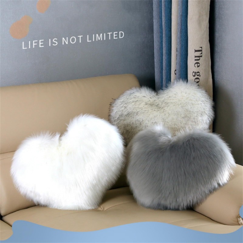 • Double-sided plush: cute gifts. These cute heart cushions are made of polyester and artificial rabbit fur and offer you a softer and more comfortable user experience. The soft, furry heart shape gives your house a romantic and luxurious tone.