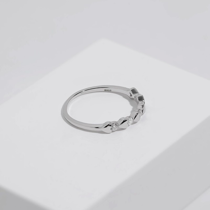 Heart Diamond Rings for Women Stacking Wedding Band Rings Sterling Silver Half Eternity Stackable Statement Ring Size Adjustable, Silver, K
