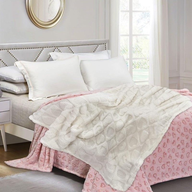 Bibykivn Heart Blanket - Fluffy Polyester Blanket for Home & On the Go