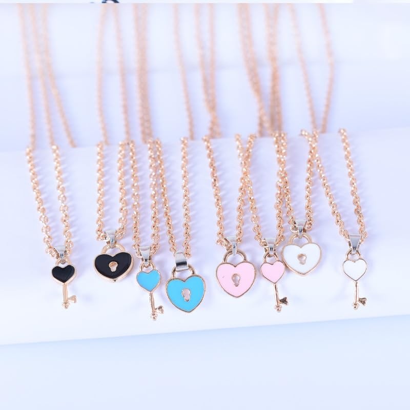 Heart Lock and Key Charm Pendant Necklace for Women Men Matching Couple Necklace Set Best Friend BFF Necklace for 2 Key to My Heart Jewelry Gift (white)