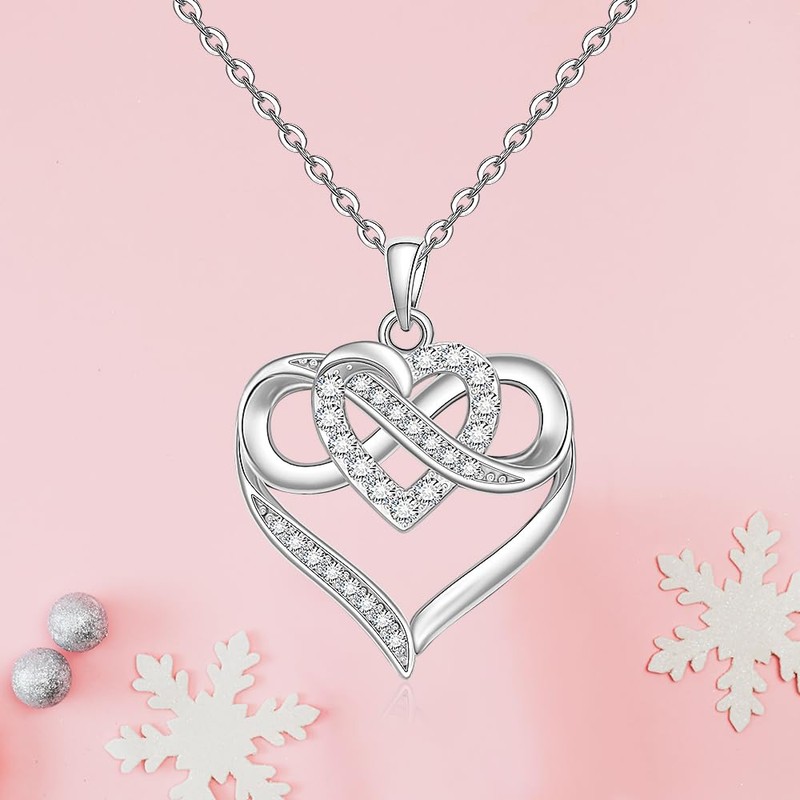 Heart Necklace Infinity Necklaces for Women 925 Sterling Silver Infinity Heart Pendant Jewelry for Mothers Day
