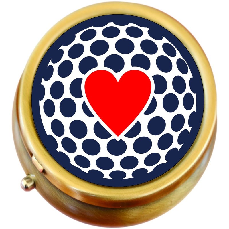 Heart on Golf Ball Brass Pill Box