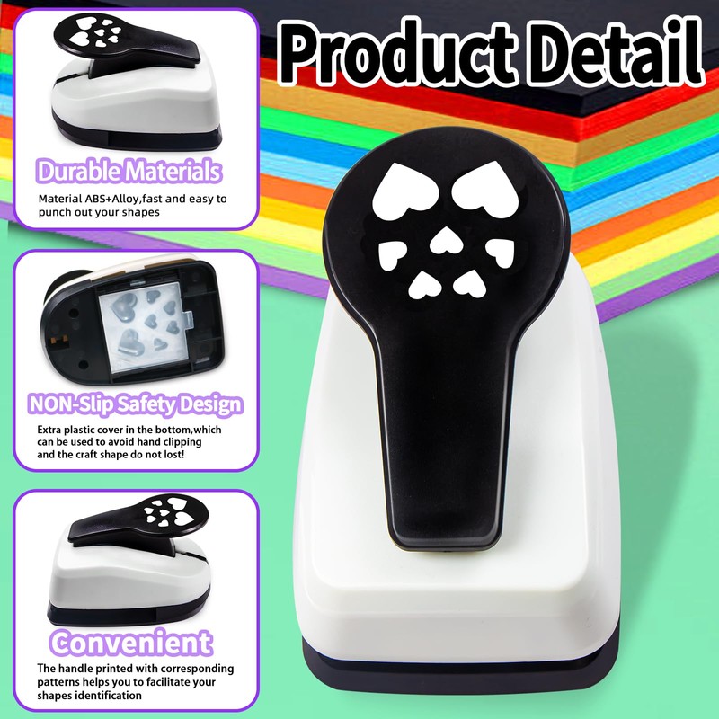- Suitable Material: Heart paper punches for crafting is suitable for 70g-220g plain paper, cardstock, craft paper. Don't put too much paper, otherwise it will get stuck ((Don't use sticky paper, tissue paper, too thick paper, felt, so as not to make the hole puncher jam)