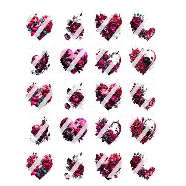 Heart Roses Nail Art Decals- Waterslide Nail Decals