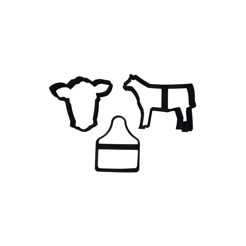 Heart's Treasure Livestock Cattle Ear Tag, Bull Head and Cow Body Cookie Cutters (3 Pack)