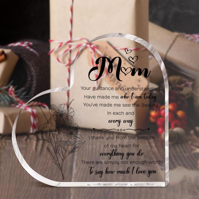 Heart Shaped Acrylic Plaque, Flower Pattern Acrylic Ornament, Mom Birthday Gift, Gift for Mom on Her Birthday Christmas Anniversary Mothers Day