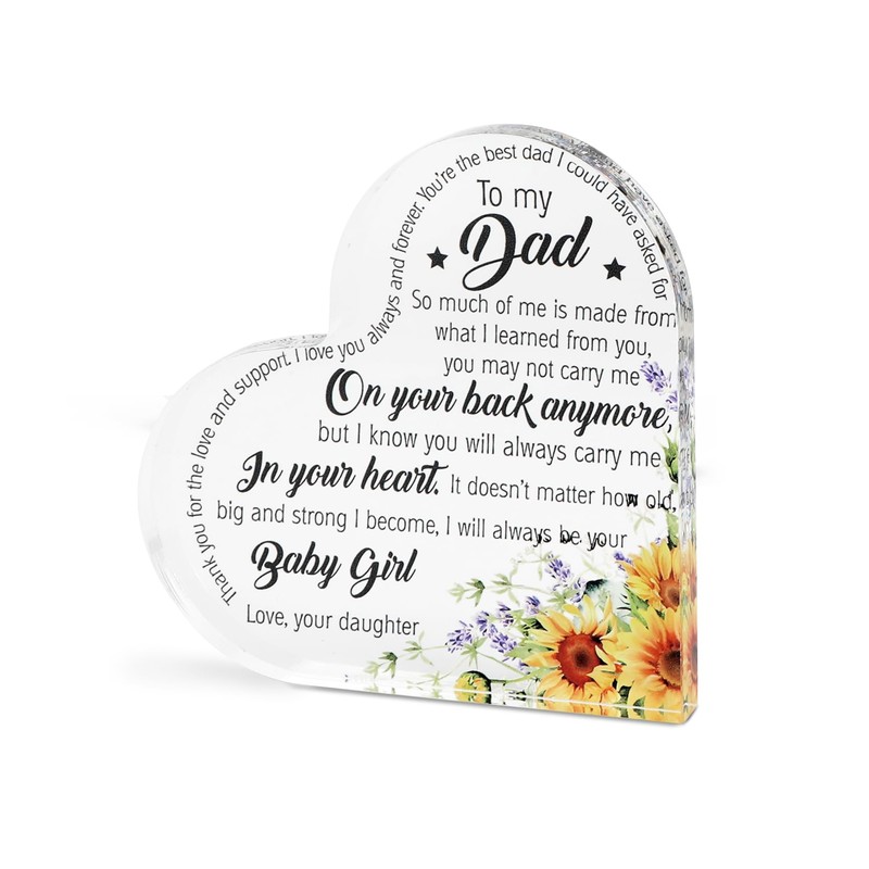 Heart Shaped Acrylic Plaque for Dad,Gift from Daughter with Sunflower Design,...
